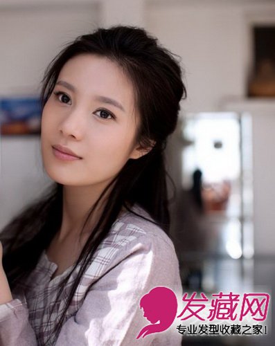 最近,邬靖靖走后门出演最小西施的新闻吵得沸沸扬扬。先不管这些是是非非,小编倒以为邬靖靖长了一张很是古典的鹅蛋脸,很适合演古装剧。这款露出额头的半扎发,气质很清新。