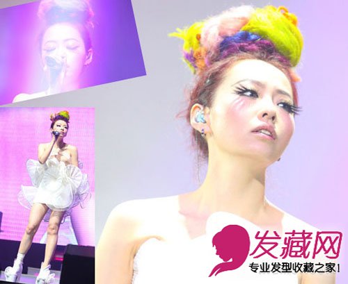 真嫌疑这场演唱会造型主导是日本造型师,将七彩棉花做成“包菜”状盘于头顶,壮丽的色彩提升了别人的视觉注重力,让张靓颖显高不少,造型抢眼,如花仙子一样平常可爱。