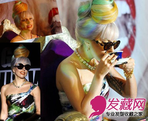 LadyGaga和张靓颖差别,张靓颖用假发LadyGaga用真发,看这七彩发丝有着霓虹般的效果,只有不敢实验的,谁感说欠好看?!