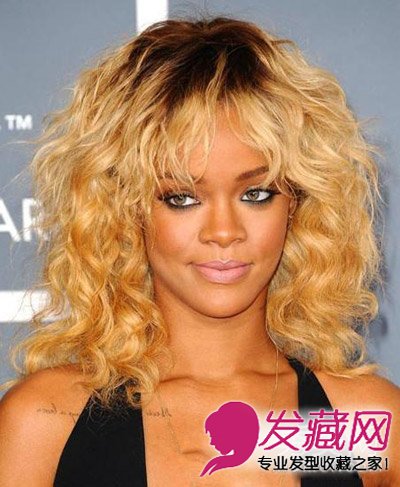 一头金黄色的蓬松带有凌乱感的小波浪卷发,本身就非常彰显个性,而向外晕染的黑色发根