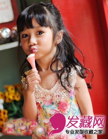 微卷的长发自然时尚,半扎公主头马上变身成熟小淑女。