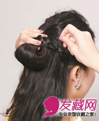 step1:辫子结尾向上凹折,用发夹固定在后脑勺。