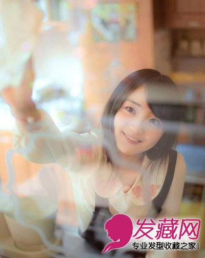长发随意披散在肩头有一种类似短发波波头的效果,透过玻璃来看她更加甜美可人,让人感觉很容易亲近。