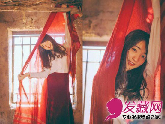 张扬的红色,在阳光下更显青春活力,自然的斜刘海中长发发型尽显女性娇媚与婀娜。