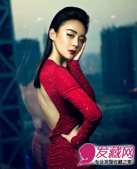 同样是直长发,这一张则玩出了不一样的味道。刘海被全部梳至脑后,被整齐地在额上挑高固定,圆滑而饱满。齐平的发尾披肩身后,浓郁的复古气息。
