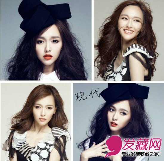 同样是帽子造型,黑白色彩下的唐嫣给人一种完全一样的感觉。性感冷艳,长卷发很显女神气质,成熟而又妩媚。