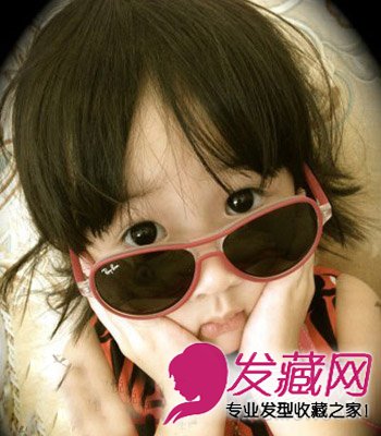 一双无辜的大眼睛在墨镜衬托下更加可爱,齐刘海,捧着脸颊尽显萌状态。