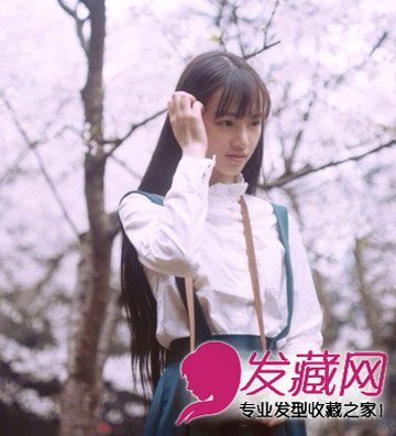 自然披肩的黑色长发,素颜清秀,纯净的白色衬衫,背带裙,充满复古文艺范。