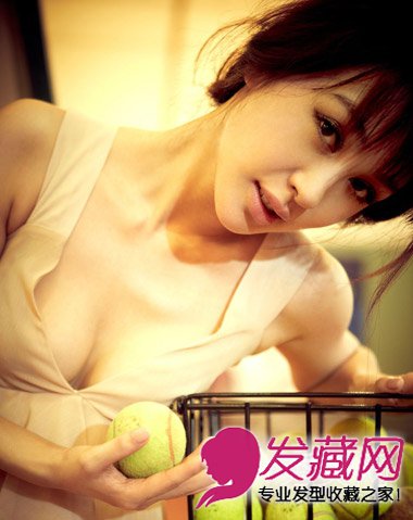 运动风的写真短时化身甜美宝贝,长发随意的挽起更显成熟甜美气质,齐眉 的齐刘海发型尽显精致小脸型。