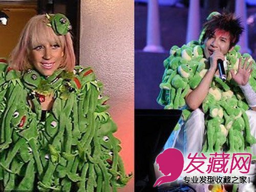 大张伟一向以搞怪造型出境博得别人的眼球,这次也跟上国际的时髦。模仿ladygaga用青蛙装做另类搞怪造型。此款青蛙装在2009年3月的巴黎秋冬时装周上亮相于Jean-CharlesdeCastelbajac的T台,当时全场掌声雷动,观众们纷纷露出惊奇的笑容,可见它的受欢迎程度。