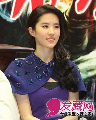 侧披的长卷发发型很好的修饰了脸型,蓬松的卷发更显脸小,甜美的笑容配上柔顺的披肩发瞬间秒杀众人。