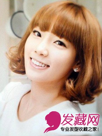 经典的韩式内扣短卷发发型,时尚的卷发微微内扣,发梢蓬松的烫发设计超显脸小,齐刘海更是减龄又显萌,是现在女生很常见的一款发型,有点类似梨花头的样子。