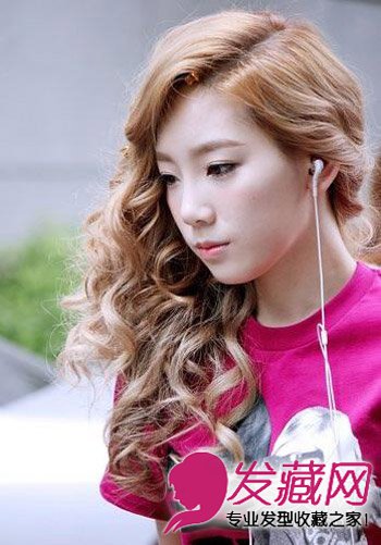 侧披的长卷发发型,简单时尚而且很好打理,亮眼的金棕色染发很显白,提亮肤色更显时尚气质。