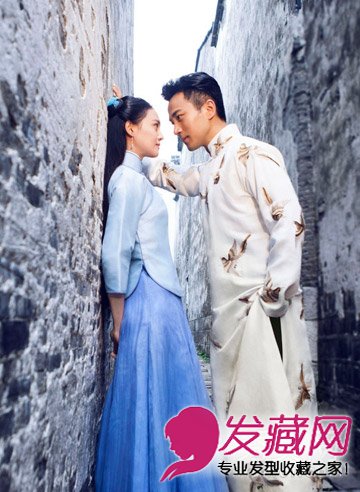 郑爽简单民国发型,蓝色长裙,小短上衣凸显娇俏女孩的纯真清新气质,与腹黑男主刘恺威深情对视,火花不断。