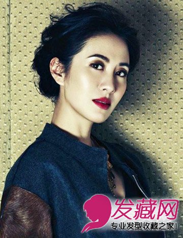 长发盘起来露出五官轮廓,显出女性自信高贵的气质,烟熏妆红唇,十分妩媚吸睛。