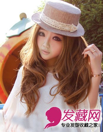 鹅蛋脸的搭配发型还有一款就是卷发发型,一款简单的卷发发型凸显出气质的脸型效果,发丝包裹住脸型更显气质。一款礼帽的搭配尽显名媛淑女气质。