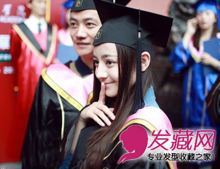 迪丽热巴学士服照,长发披肩,戴上学士帽,笑容纯真,看上去靓丽可人。