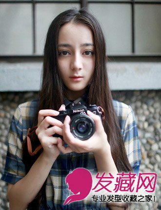 复古格子连衣裙,校园女神范,中分发型修饰脸蛋更加娇俏迷人,披发拿着相机尽显森系少女风格。