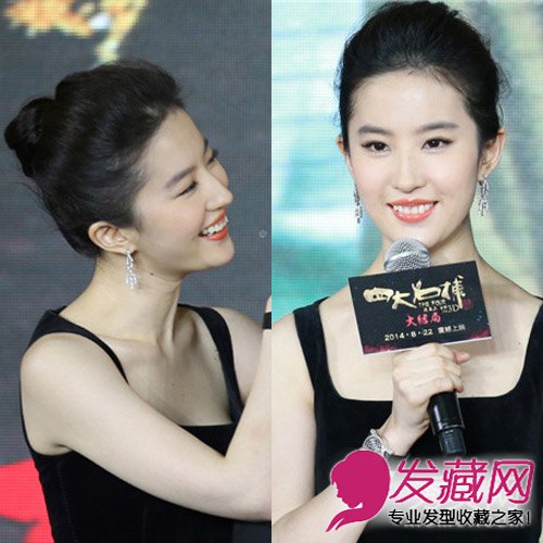 刘亦菲可以说是现场三人中气质最出众的一个,简洁的高扎丸子头都能称出浓浓仙气,额头碎发随意散落,充满了自然魅力,乌黑的秀发更是让刘亦菲显的白皙娇嫩。
