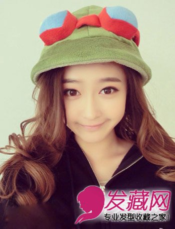 这个90后的女孩看上去圆脸还是很清纯漂亮的,妩媚的的长卷发,栗色调十分小清新,配帽子更可爱。