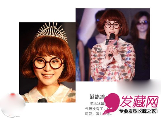 范冰冰的公主短发造型很是可爱,棕色的卷发充满童真趣味,圆润的眼镜让她看起来略显呆萌,女王气场没那么强了。