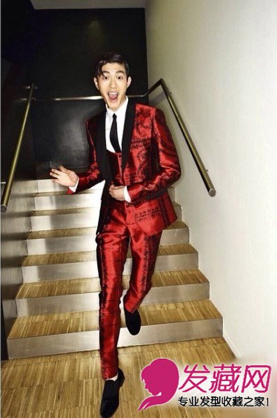 外形俊朗而又活泼好动的他很适合这样的卷发造型,时尚油头搭配一点点的卷刘海的效果更显潮范,西装造型很是养眼。