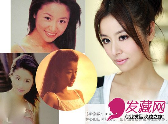 从十几年前的旧照来看,林心如的容貌变化真都不大,早期露的长发发型很是清纯,长发半扎更显乖巧可爱。现在的林心如越来越御姐范,中分刘海发型也很是时尚减龄,精致的妆容搭配更显女神本色。