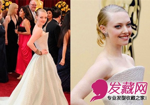 看得出来Amanda已经将近30了吗?如少女一般梳光的刘海,露出整个光洁的额头,整个发型一丝不乱,在脑后垂下的马尾增加了亲切感,搭配一袭雪白的礼服,宛若少女。