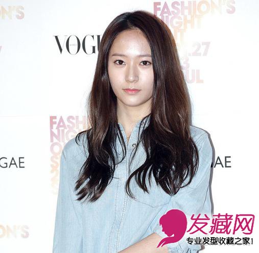 韩国当红女子组合郑秀晶Krystal的皮肤白皙,面容姣好,侧分的黑色卷发柔顺地披散下来,唯美的卷发散发出晶莹的光泽感,清新又不失甜美淑女范儿。自然的发色让她没有距离感,中分长刘海凸显了她的脸部棱角,凌乱的微卷发让人觉得好像没有烫卷过一般自然。