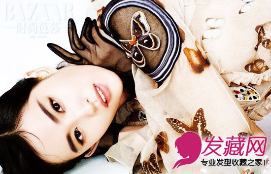 明媚的秋日造型,蝴蝶图案的长袖上衣充满了秋日浪漫感觉,刘亦菲白皙的肌肤感觉好像会发光一样。