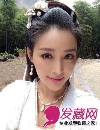 一袭素雅白衣的沈璧君,颇有脱俗之气,发饰点在发间,披肩束发用发带绑扎,唯美清秀。