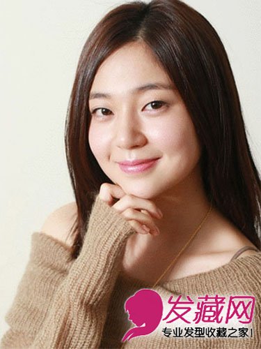 依然是中分刘海,但这款头发没有烫卷,简单低调的栗色染发,自然垂直的长发披肩,气质优雅。