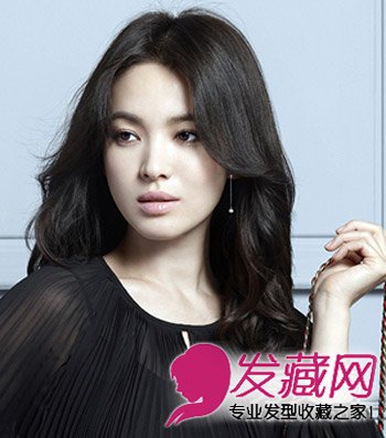 韩流MM们最爱的一款韩式中长发烫发,蓬松的波浪式卷烫发飘逸清新,加上斜刘海修饰脸型,甜美可人的韩国明星发型设计。