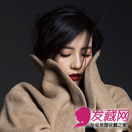 竖起大衣的领子,将长发随意的盘起,时髦有型,略带凌乱的发型透露出一些慵懒妩媚的气息,最后为黑发配一个大红唇,让气场大大提升!