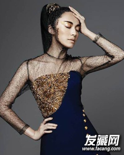 将刘海全部弄起来,瞬间变身气场女王,欧美范十足,简约不失性感,原本的缺点也变成了加分点。