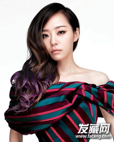 今年海豚音公主比较喜欢将头发放到一侧面,大面积侧分头发成熟妩媚,棕色渐变紫色的头发显得时尚野性。