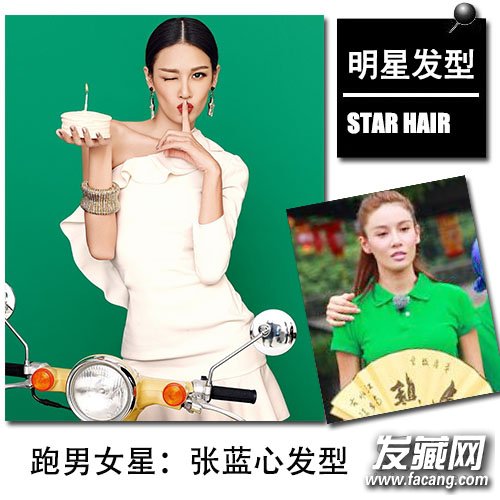 节目里的张蓝心一头棕色长发扎起,干净又利落,写真里的她却是与节目里不同的形象,中分黑色长发扎到后面,俏皮表情可爱显大气。