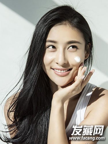 贾青长发自然飘逸,脸上沾上泡沫,俏皮可爱,颇有小清新风格。