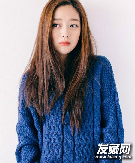 清纯而低调的染发让发色更有光泽,中分长刘海的设计在视觉上有修饰脸型的作用,披肩的长直发还能起到减龄卖萌的作用呢。