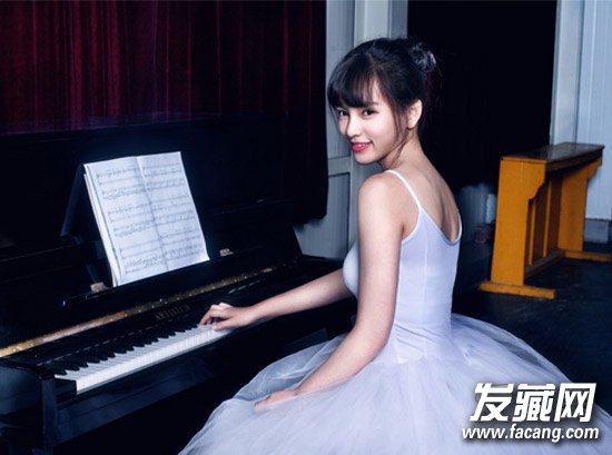 侧面造型,将长发盘起来,扎个丸子头,搭配空气刘海很是清新甜美。