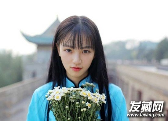 复古风的写真造型,还是经典的黑长直,搭配民国风的学生服,很显小清新气质。