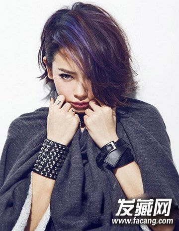 帅气的花轮头发型加上个性的纹理烫发设计,本就颇为时尚,再加上时尚的紫色挑染更显无比的帅气与个性范。