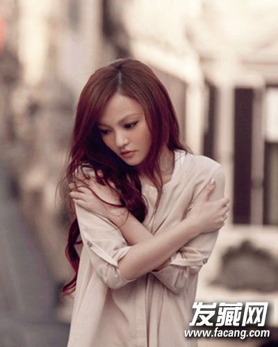 斜分的刘海设计勾勒精致的五官,超大波浪的卷发有种楚楚动人的感觉。