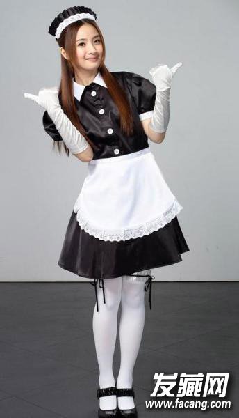 圆脸的林依晨女仆装很是清纯,中分长直发披在肩头,黑白色搭配简洁明快。