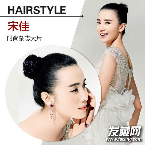 宋佳的这组写真照就是以利落的丸子头造型出镜的,因为丸子头设计相对比较紧致,且搭配不同的妆容服饰让宋佳变得优雅高贵。