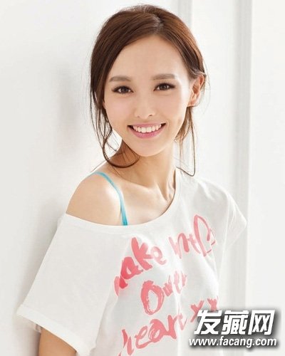 头发盘成中松散发髻,搭配简洁斜刘海,不仅在夏日清爽更能展现精致的五官。