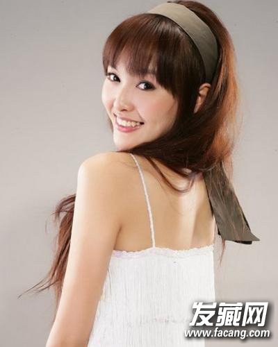 略带蓬松的直发,减龄齐刘海,配上散发淡淡光泽感的发带,给人邻家女孩般的乖巧形象。
