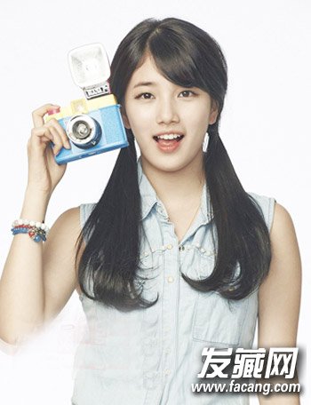 超卡哇伊的双马尾发型,一定是女生减龄发型首选,扎两个辫子,斜刘海修饰圆圆的脸蛋,内扣的发尾更显得乖巧迷人。