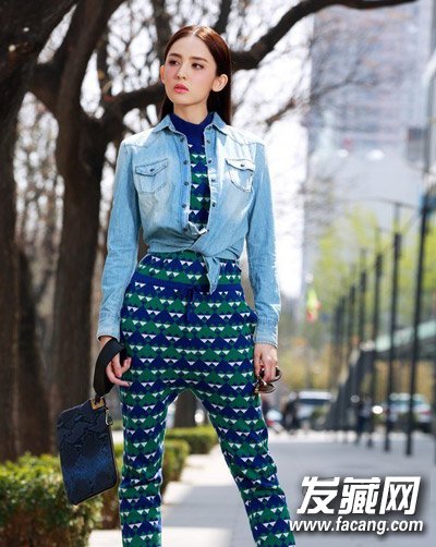 将长发全部披在肩头,刘海弄起来,街拍感很强的一款发型,时尚穿搭养眼迷人。