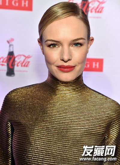 Kate-Bosworth的斜分刘海露出饱满的额头,发色与上衣的颜色好搭啊!